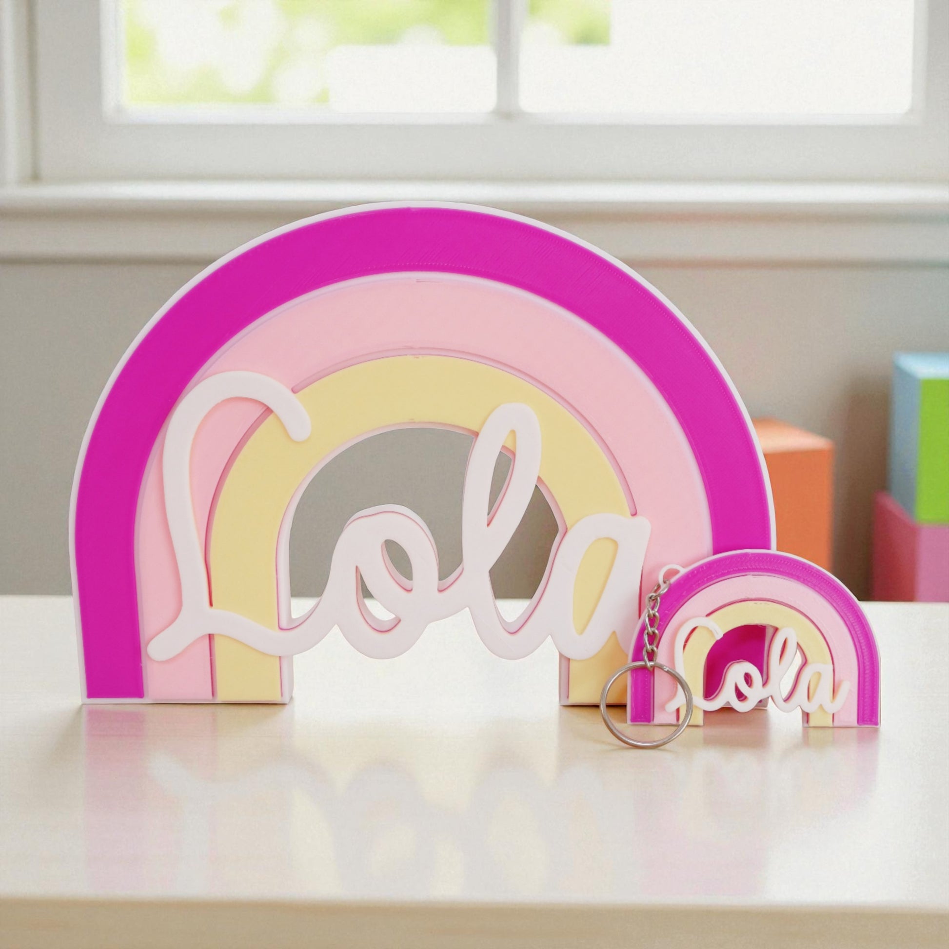 Dale un toque mágico y personalizado a la habitación con este precioso arcoíris 3D. Puedes elegir los colores de cada arco y añadir el nombre que desees para hacerlo totalmente único.