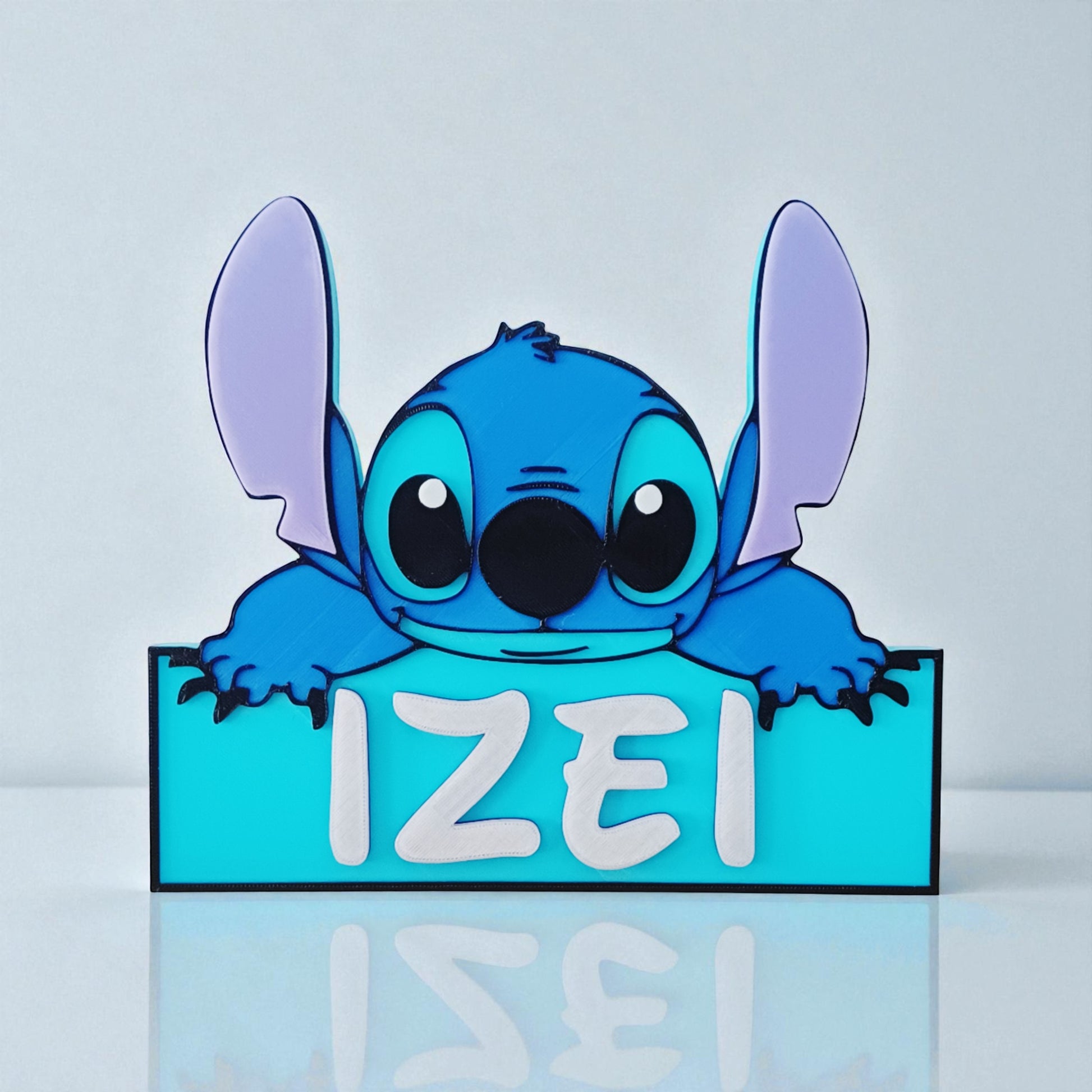 🌺💙 Cartel de Stitch Personalizable con Nombre que Brilla 🌙✨